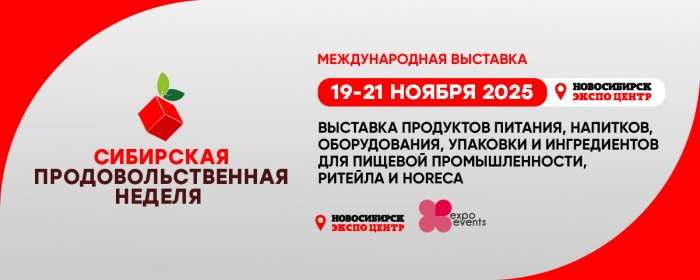 19-21 ноября в Международном выставочном комплексе "Новосибирск Экспоцентр" будут проходить международная выставка для продуктового ритейла и HoReCa "Сибирская продовольственная неделя". В СПН участвует более 200 компаний из шести стран и предоставляют свою продукцию аудитории 7 200+ профессиональных посетителей. Продукты питания, напитки, ингредиенты, оборудование и упаковка — всё, что нужно для развития бизнеса в сфере ритейла и HoReCaбудет представлено на СПН-2025. Приглашаем принять участие в мероприятиях выставки заинтересованных представителей сферы торговли и общественного питания. Подробнее о Международной выставке «Сибирская продовольственная неделя» на сайте prod-week.ru.